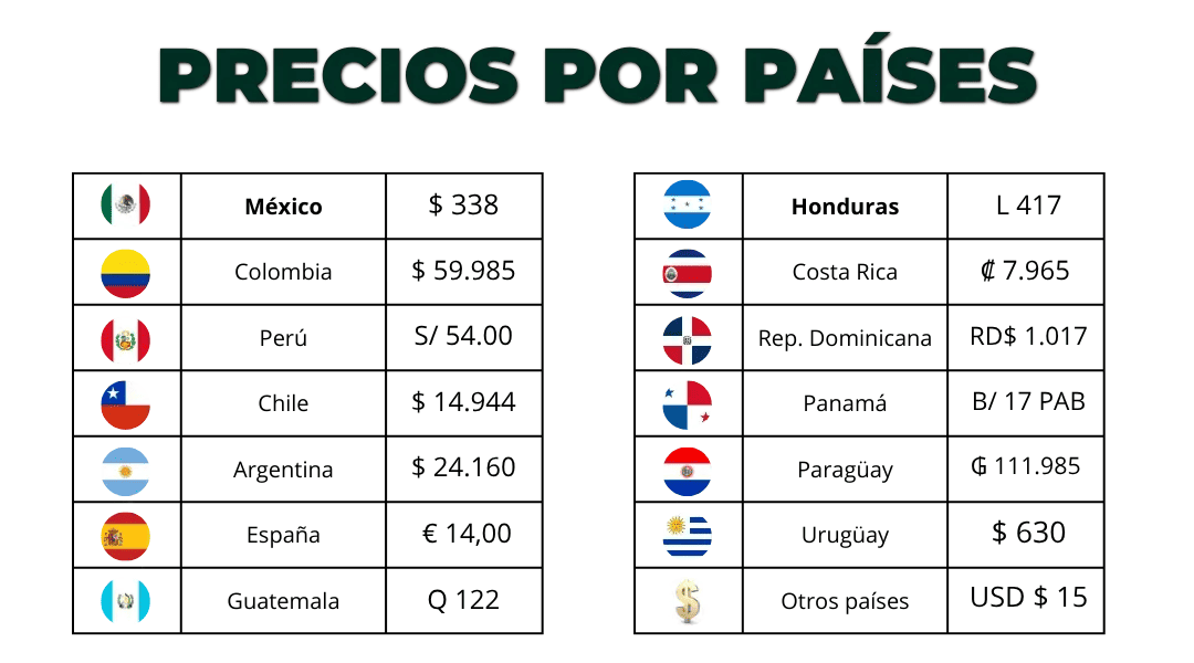 Aceptamos tarjetas de crédito, débito y PayPal. Además, si estás en México, Colombia, Chile o Perú, también puedes pagar en efectivo, contactando a nuestro asesor de ventas vía WhatsApp.